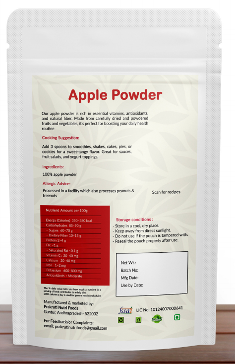 Whether you're a health-conscious consumer, a culinary enthusiast, or a busy parent looking for nutritious snack options, Apple Powder is the perfect addition to your pantry. It's gluten-free, vegan-friendly, and requires no refrigeration, making it an ideal choice for on-the-go nutrition and creative cooking adventures.