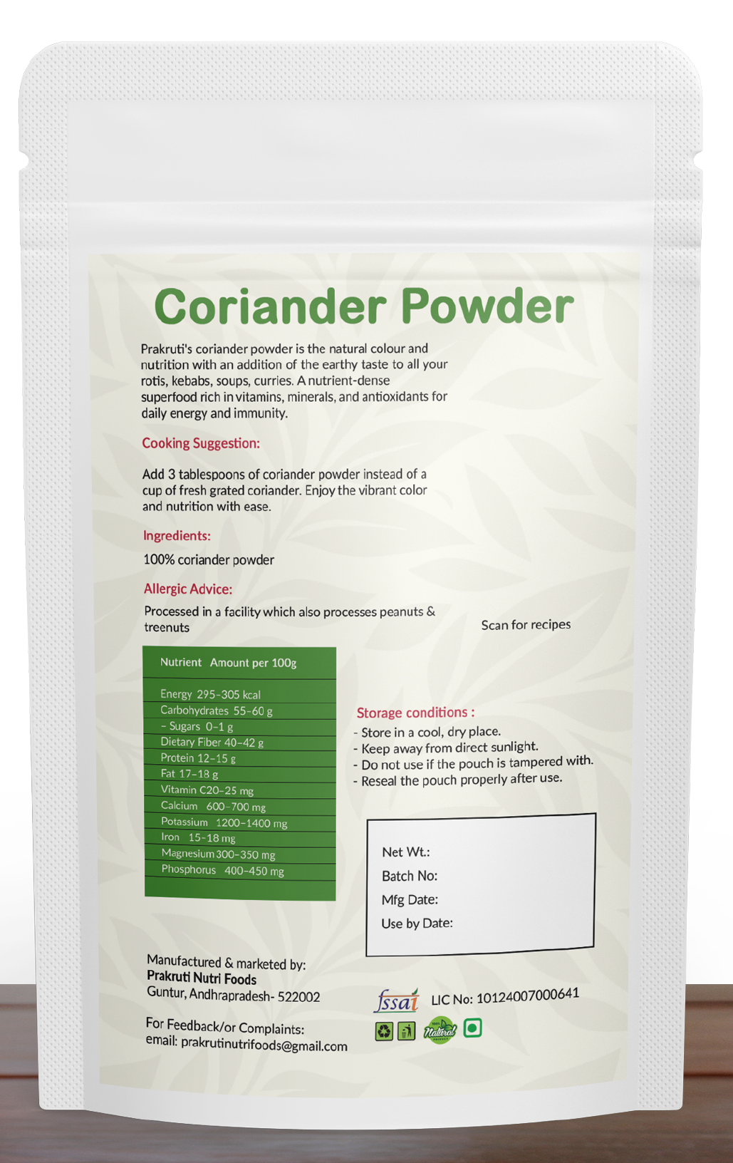 Rich in vitamins, minerals, and antioxidants, this all-natural spice not only enhances taste but also contributes to your overall wellness. Free from additives, preservatives, and artificial ingredients, our Coriander Leaves Powder is sourced and processed with quality and purity in mind, ensuring you get the finest herbal experience in every pinch.