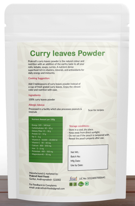 Whether you're preparing classic Indian curries, dals, rice dishes, or experimenting with fusion cuisine, our Curry Leaf Powder is an essential pantry staple. Simply sprinkle into your cooking for an instant burst of authentic flavor. Each batch is carefully processed to preserve the natural oils and nutrients that give curry leaves their distinctive character and health benefits.