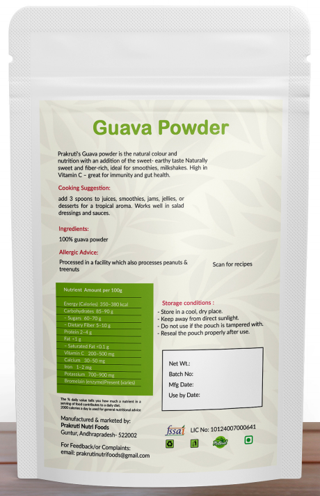 - Pure 100% sun-dried guava powder with no additives or fillers